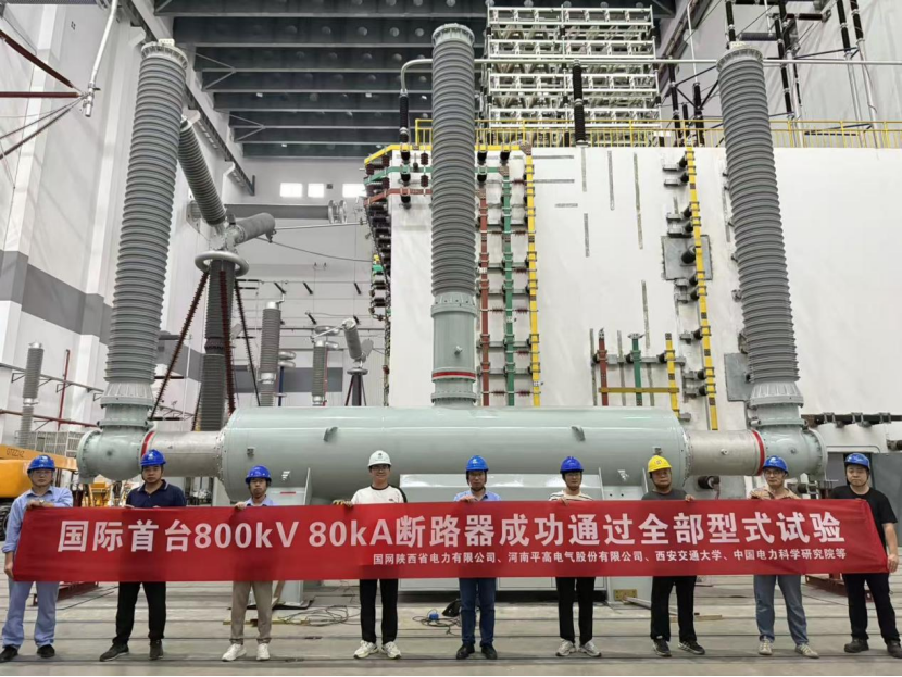 9月22日,从河南平高电气股份有限公司获悉,该公司联合国网陕西电力、西安交大、中国电科院等单位研制的国际首台800千伏80千安断路器,在国网(常州)电气设备检测中心圆满完成全部型式试验考核。这一重大成果标志着我国在高压大容量断路器领域实现全球领先,为750千伏电网短路电流超标治理提供了关键技术装备支撑。
