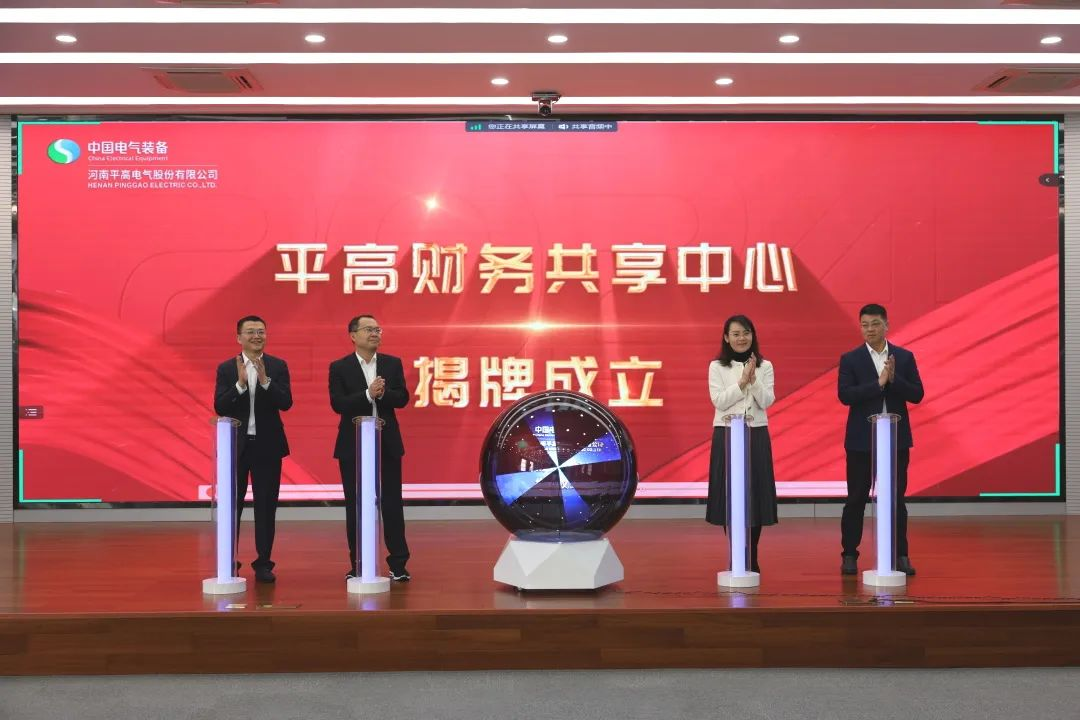 4月12日,平高财务共享中心在平顶山举行揭牌仪式。中国电气装备财务资产部部长杜丹丹、会计处处长胡威威,平高电气党委副书记、总经理朱琦琦,党委委员、总会计师李亚军共同为“平高财务共享中心”成立揭牌。中国电气装备党委常委、总会计师徐鸿视频见证揭牌仪式并讲话。
